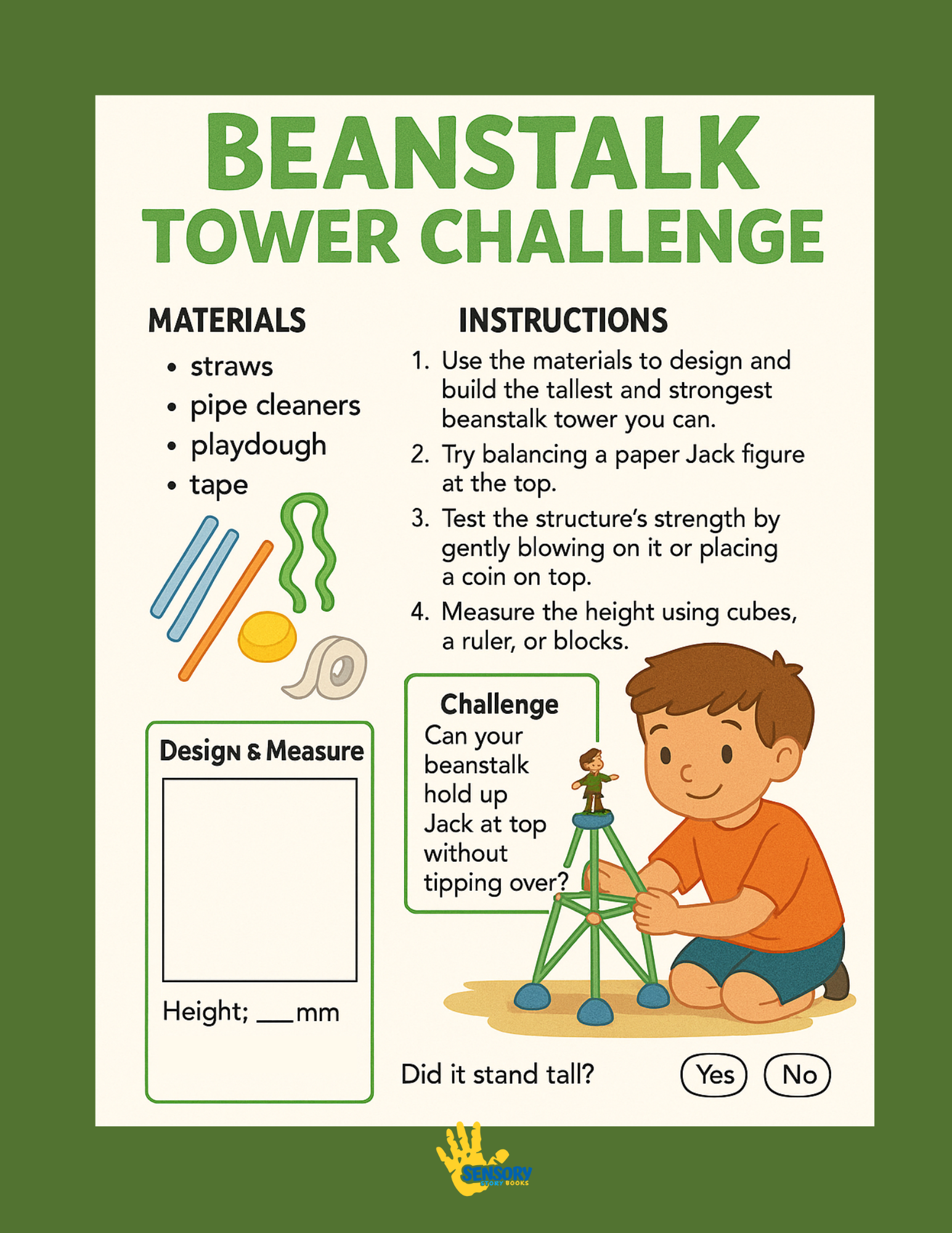 Continue your learning with the Jack and the Beanstalk STEAM packet and activity box. In this 21-page STEAM packet you will find activities for Science, Technology, Engineering, Art, and Math, and the STEAM activity box includes materials for three of the five STEAM activities.