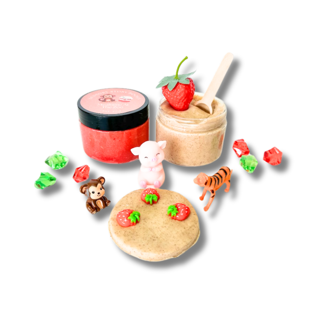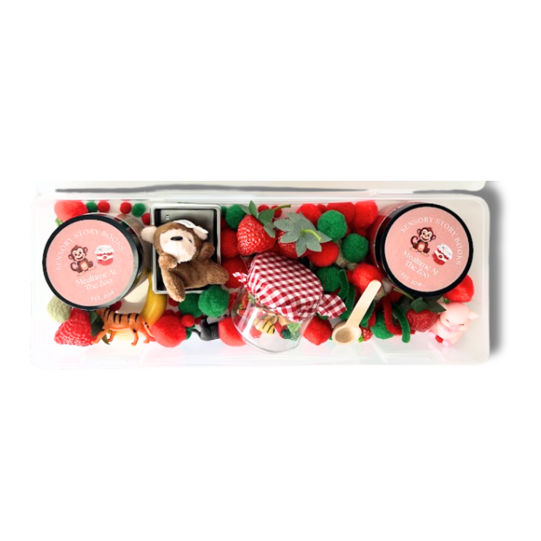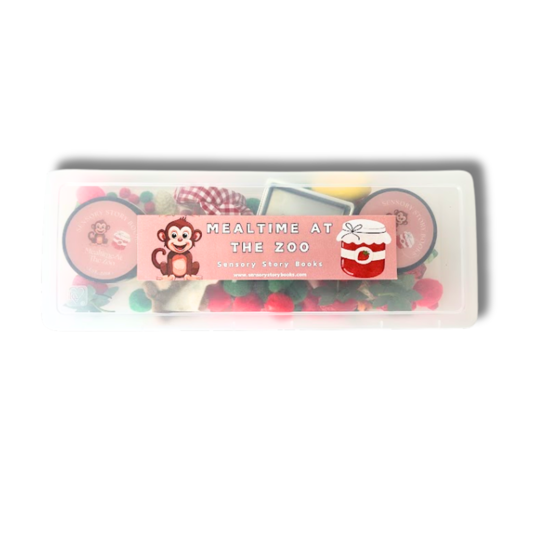 Bring this energetic book to life with a fun, hands-on sensory kit for little hands! Read Mealtime At The Zoo to your child, and have your child re-create the story using the sensory dough and themed pieces that are included. Talk about the book with our Sensory Story Book Talk Card. This sensory kit includes sensory dough and themed sensory pieces for screen-free, creative play. Book sold separately.