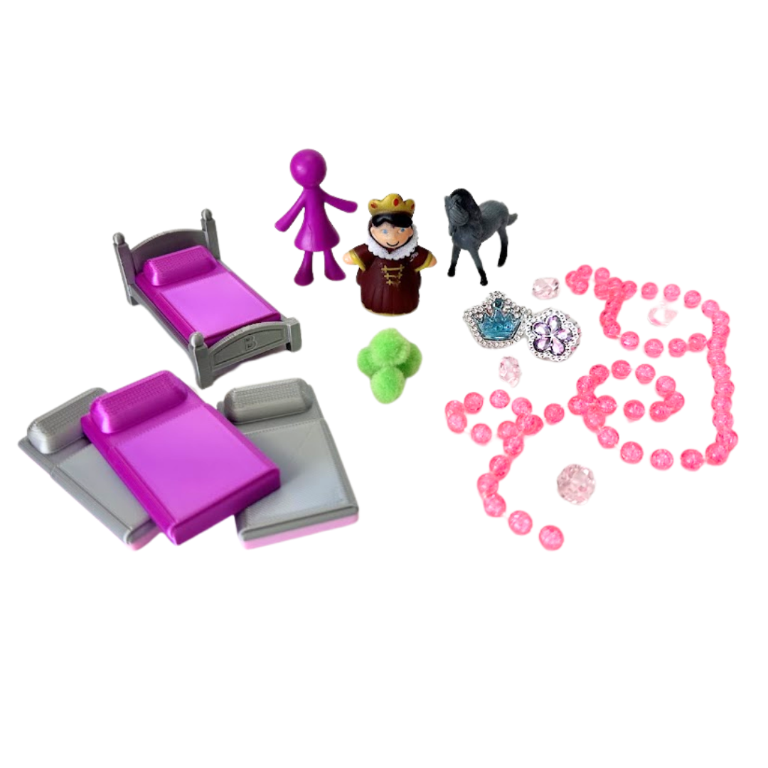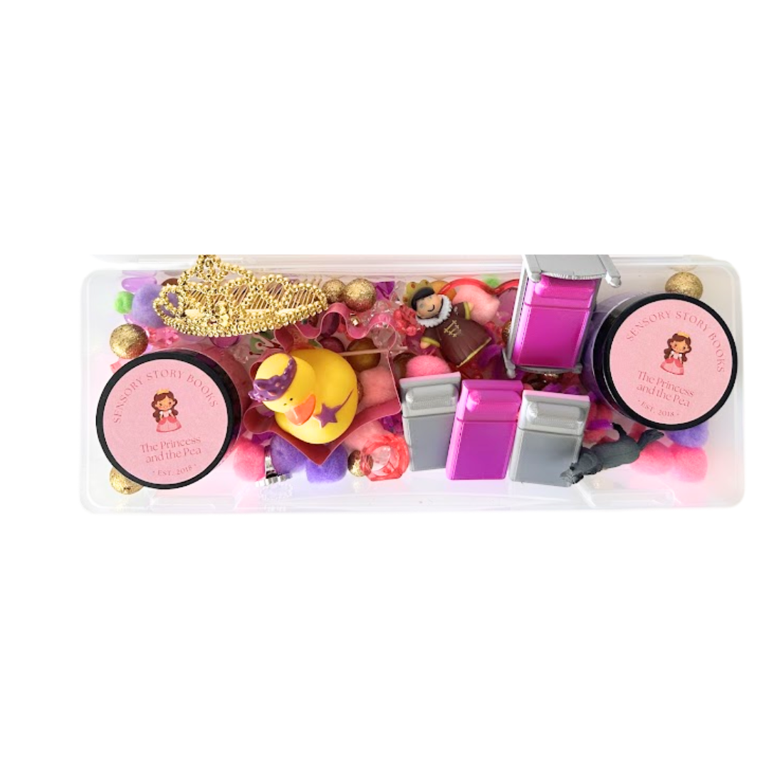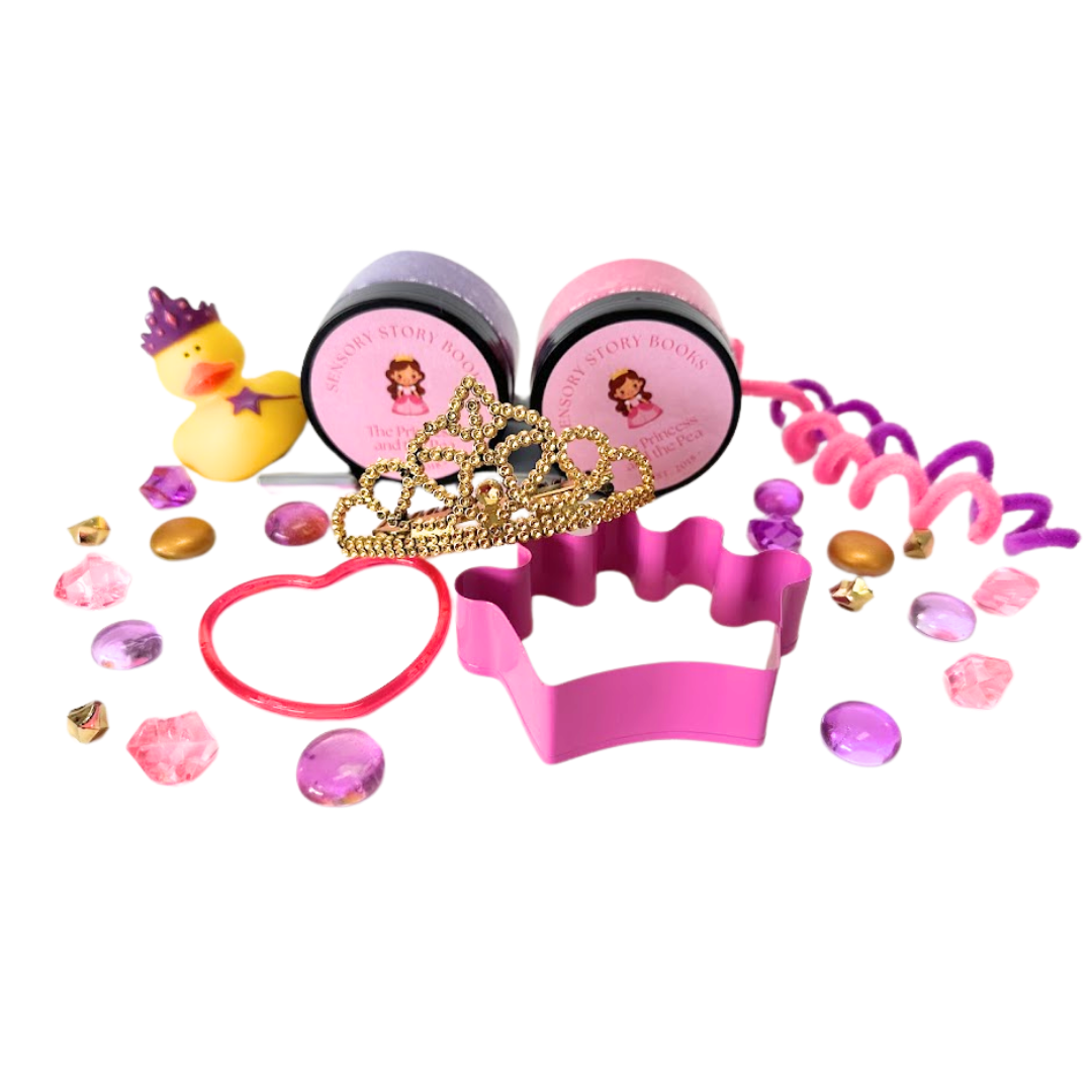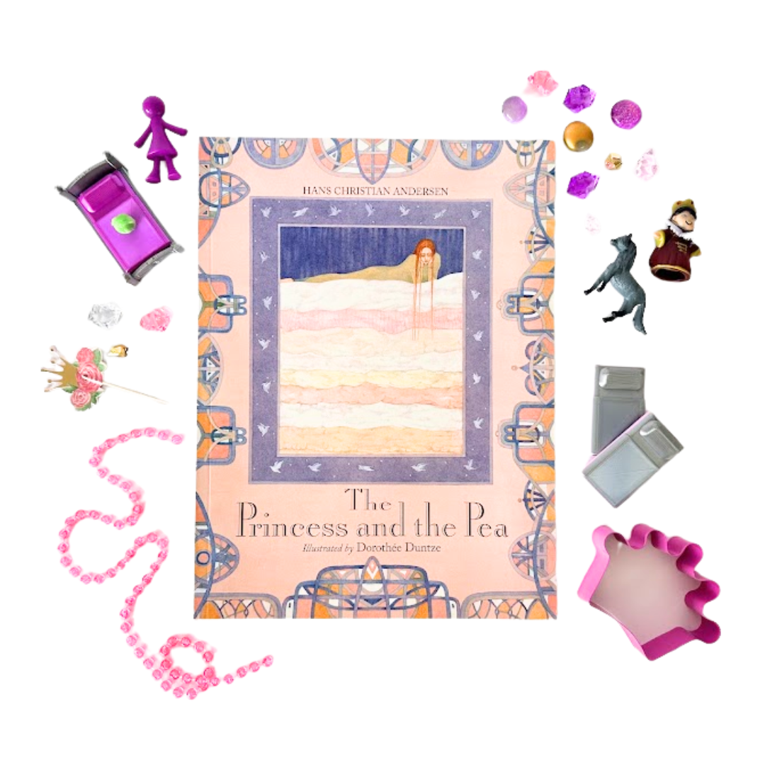 Bring this enchanted book to life with a fun, hands-on sensory kit for little hands! Read the book The Princess and the Pea to your child, and have your child re-create the story using the sensory dough and themed pieces that are included. Talk about the book with our Sensory Story Book Talk Card. This sensory kit includes sensory dough and themed sensory pieces for screen-free, creative play. Book sold separately.