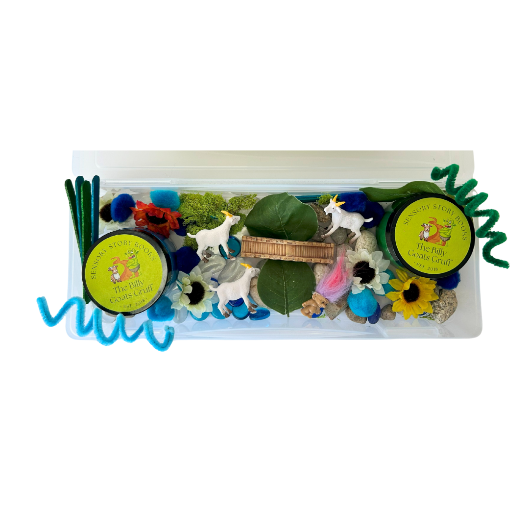 Bring this classic fairy tale to life with a fun, hands-on sensory kit for little hands! Read the book The Three Billy Goats Gruff to your child, and have your child re-create the story using the sensory dough and themed pieces that are included. Talk about the book with our Sensory Story Book Talk Card. This sensory kit includes sensory dough and themed sensory pieces for screen-free, creative play. Book sold separately.