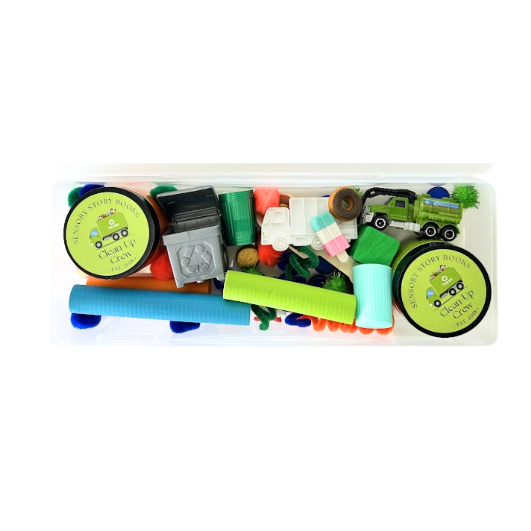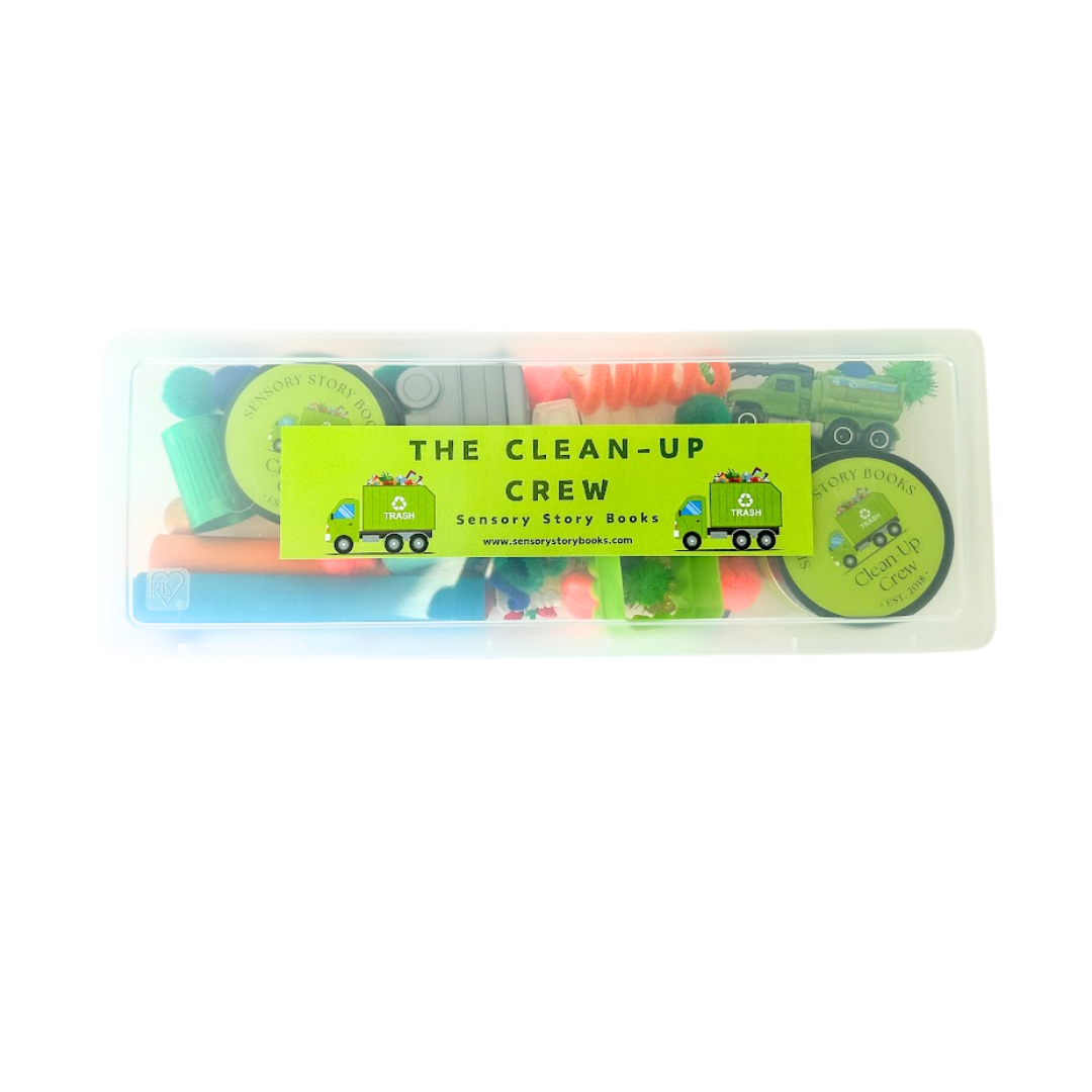 Bring this educational book to life with a fun, hands-on sensory kit for little hands! Read the book Clean-up Crew to your child, and have your child re-create the story using the sensory dough and themed pieces that are included. Talk about the book with our Sensory Story Book Talk Card. This sensory kit includes sensory dough and themed sensory pieces for screen-free, creative play. Book sold separately.