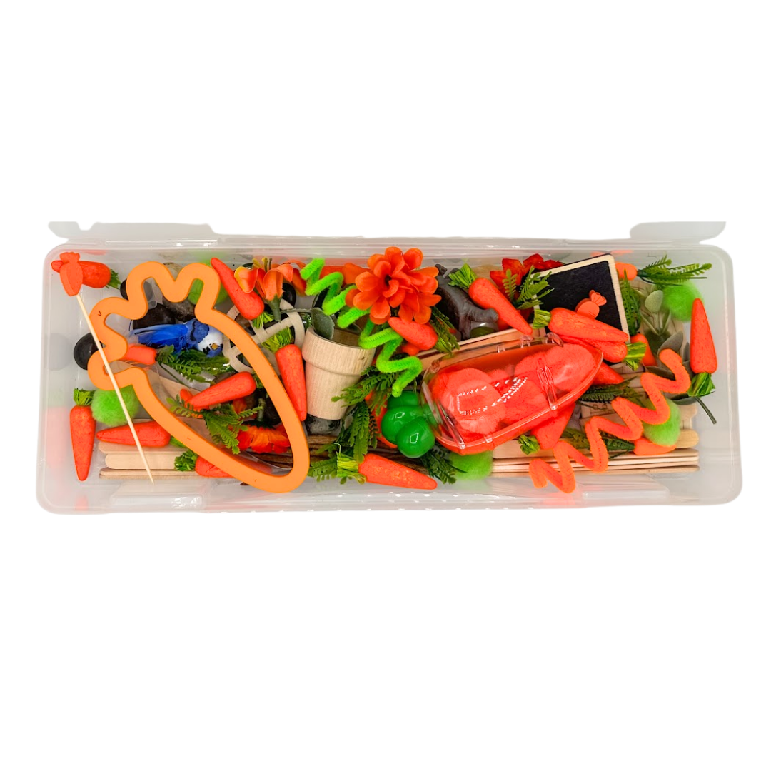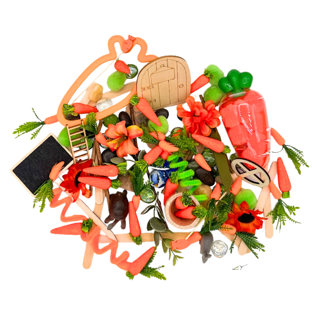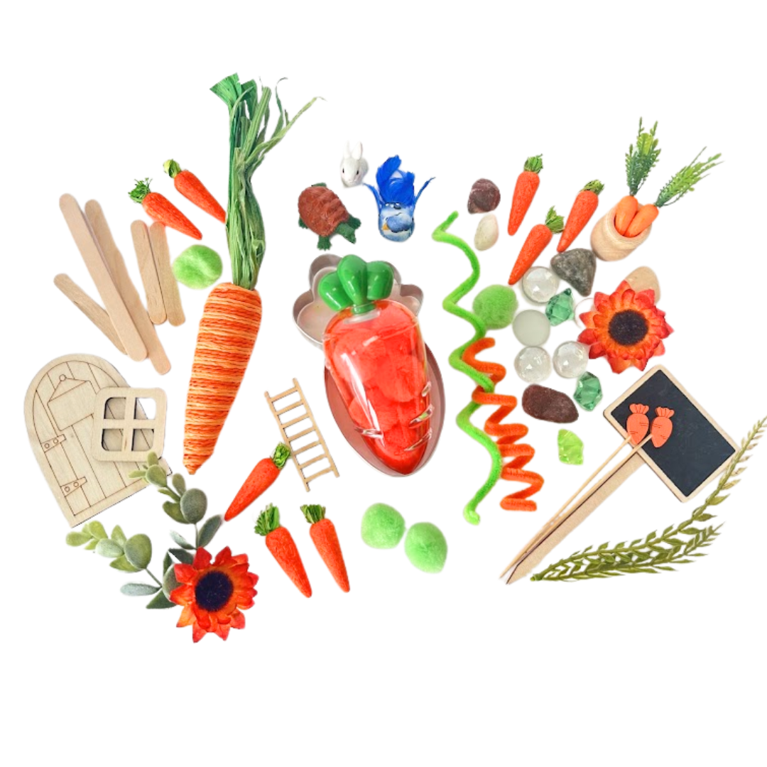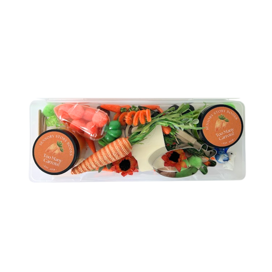 Bring this book to life with a fun, hands-on sensory kit for little hands! Read the book Too Many Carrots to your child, and have your child re-create the story using the sensory dough and themed pieces that are included. Talk about the book with our Sensory Story Book Talk Card. This sensory kit includes sensory dough and themed sensory pieces for screen-free, creative play. Book sold separately.