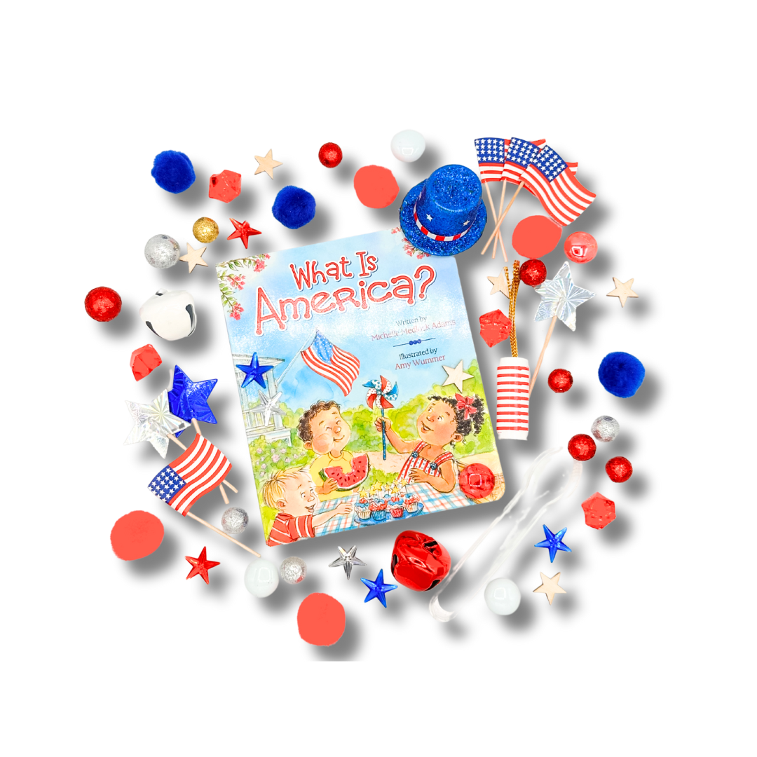 Bring this patriotic book to life with a fun, hands-on sensory kit for little hands! Read the book America to your child, and have your child re-create the story using the sensory dough and themed pieces that are included. Talk about the book with our Sensory Story Book Talk Card. This sensory kit includes sensory dough and themed sensory pieces for screen-free, creative play. Book sold separately.